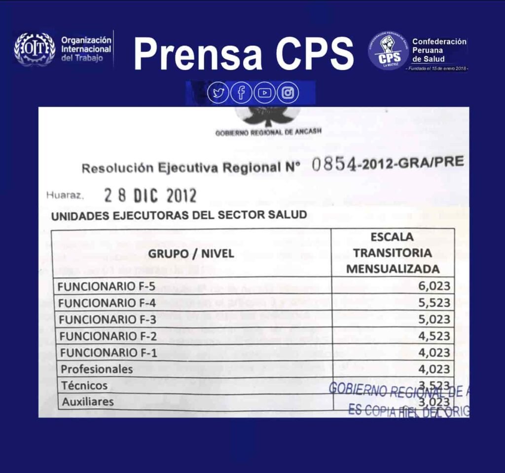 Estas normas del 2011 y 2012 aprobaron en su momento los actuales montos que rigen la escala que ha sido aprobada por el MEF y son bases jurídicas de esta nivelación. Fue un trabajo silencioso, pero decisivo que encabezó a nivel regional Ramón Peralta Maldonado dirigente de la Sub Región, Jesús Mantilla Roque por Educación, por el sector Salud Delmer Lara Quezada y los representantes de Agricultura, Transportes y otros.